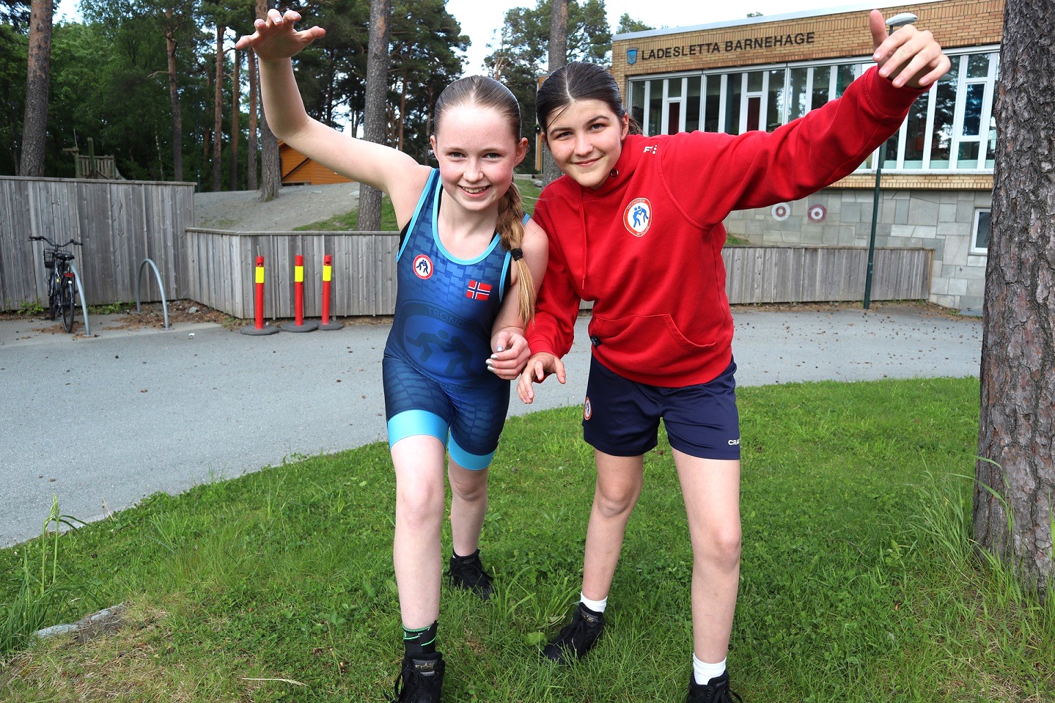 Venninnene som begge går i 7. klasse ved Breidablikk skole, forteller at de begynte med bryting for et par år siden.