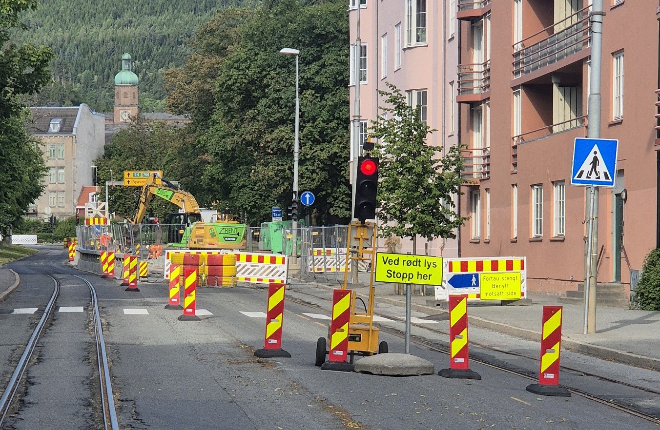 Gående og syklende vil fremdeles kunne bruke strekningen, men oppfordres til å velge alternative ruter via Erling Skakkes gate eller Piren.