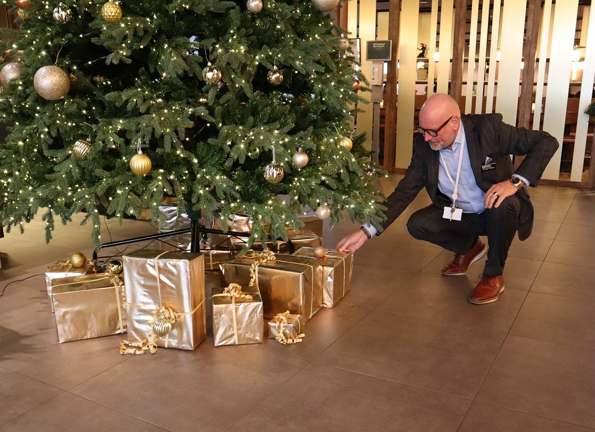 Hotelldirektør Bjørnar A. Kristiansen (bildet) håper mange vil legge gaver under juletreet i hotellets resepsjonsområde.
