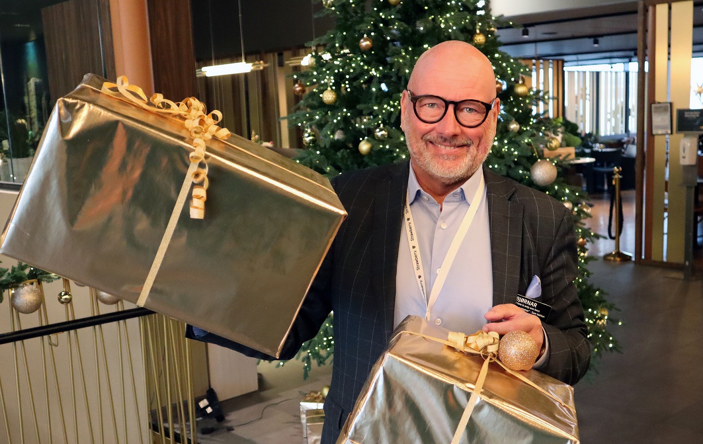Hotelldirektør Bjørnar A. Kristiansen (bildet) håper mange vil legge gaver under juletreet i hotellets resepsjonsområde.